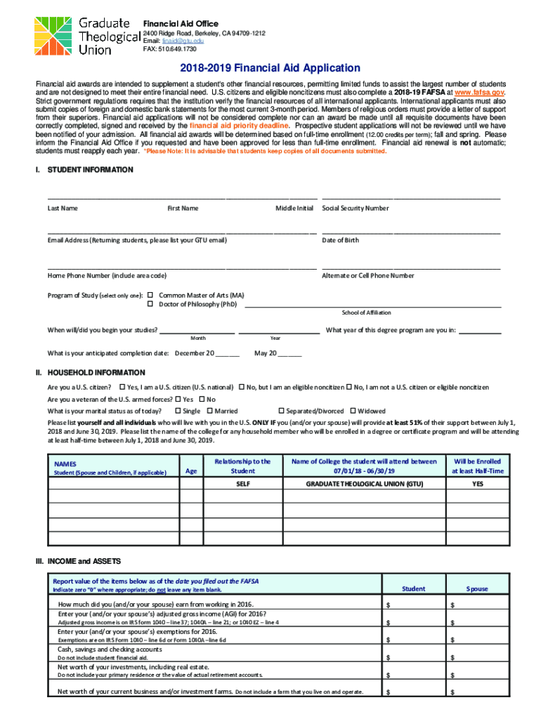 Get the free 2018-2019 Financial Aid Application. 2018-2019 Financial Aid Application