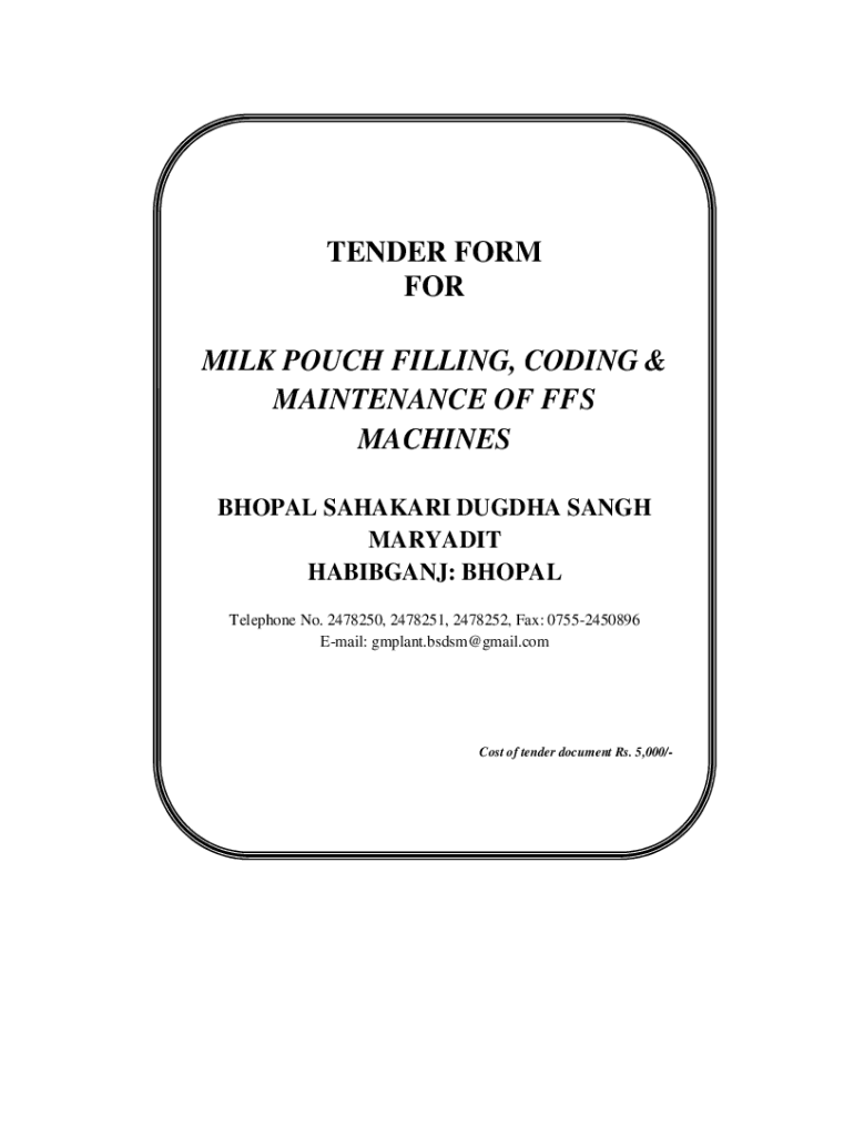 Get the free TENDER FORM FOR MILK POUCH FILLING, CODING ...