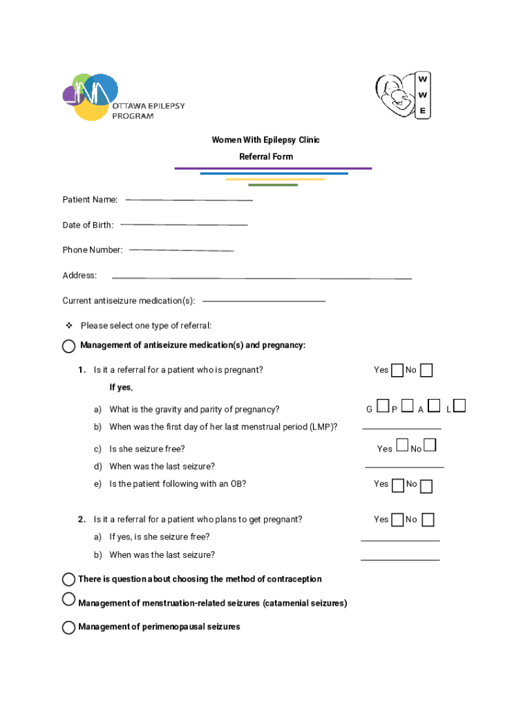 Women With Epilepsy Clinic Referral Formation Name: Date of Birth: Phone Number: Address: Current antiseizure medication(s): Please select one type of referral: Management of antiseizure medication(s)