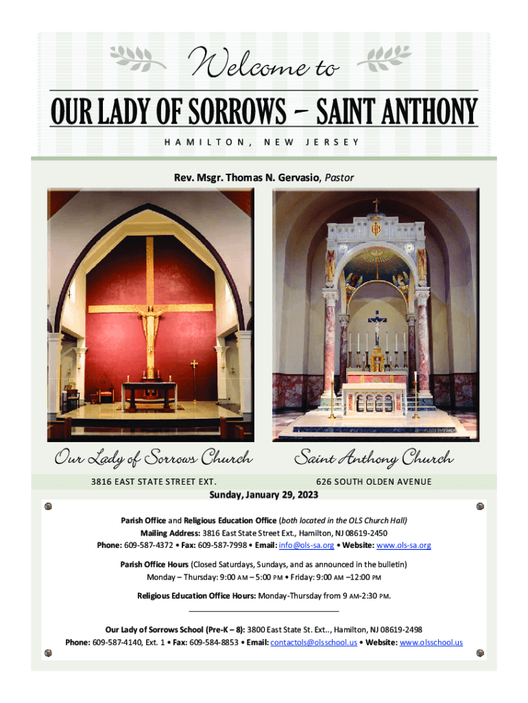 OUR LADY OF SORROWS SAINT ANTHONY H A M I L T O N, N E WE E R S EY Rev. Msgr. Thomas N. Gervais, Pastor3816 EAST STATE STREET EXT.626 SOUTH OLDEN AVENUE Sunday, January 29, 2023, Parish Office and