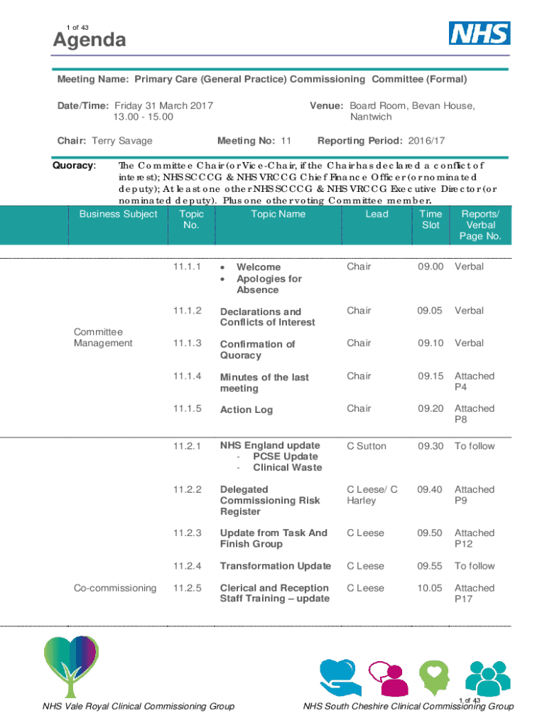1 of 43Agenda Meeting Name: Primary Care (General Practice) Commissioning Committee (Formal) Date/Time: Friday 31 March 2017 13.00 15.00 Chair: Terry SavageVenue: Board Room, Began House, Sandwich