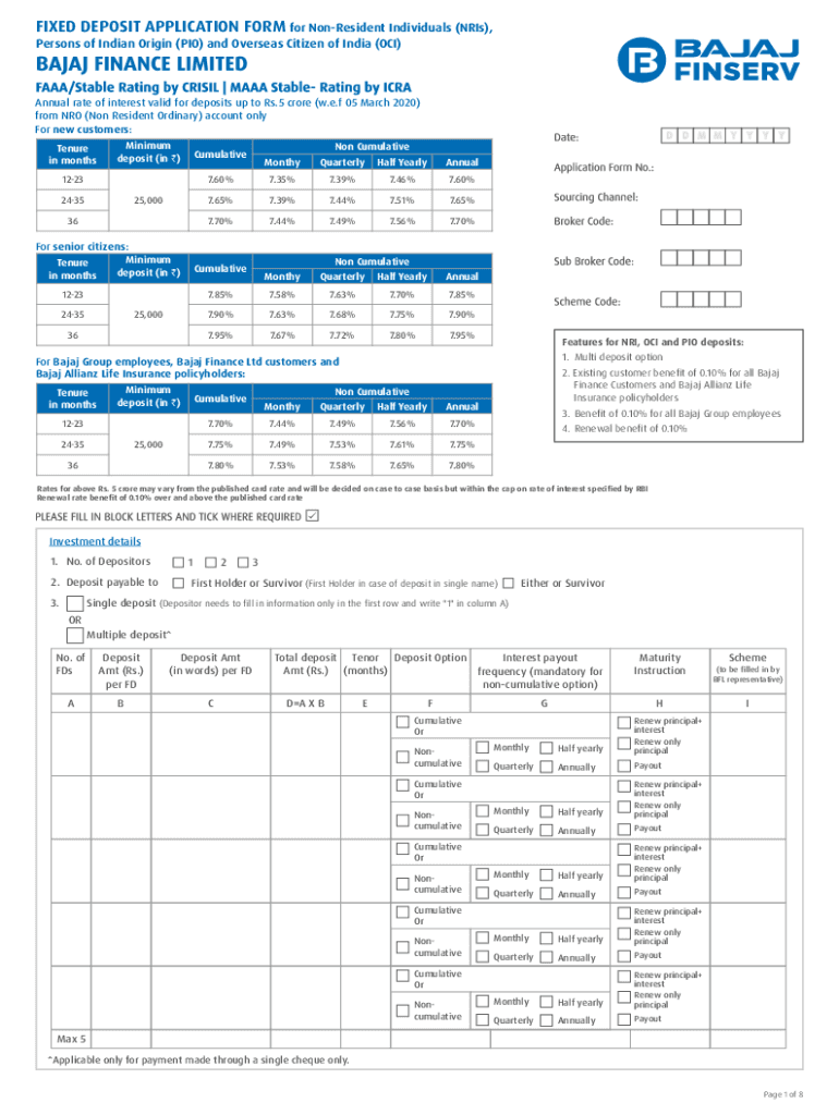 FIXED DEPOSIT APPLICATION FORM for Nonresident Individuals (Iris), Persons of Indian Origin (PIO) and Overseas Citizen of India (OCI)Annual rate of interest valid for deposits up to Rs.5 crore (w.e.f