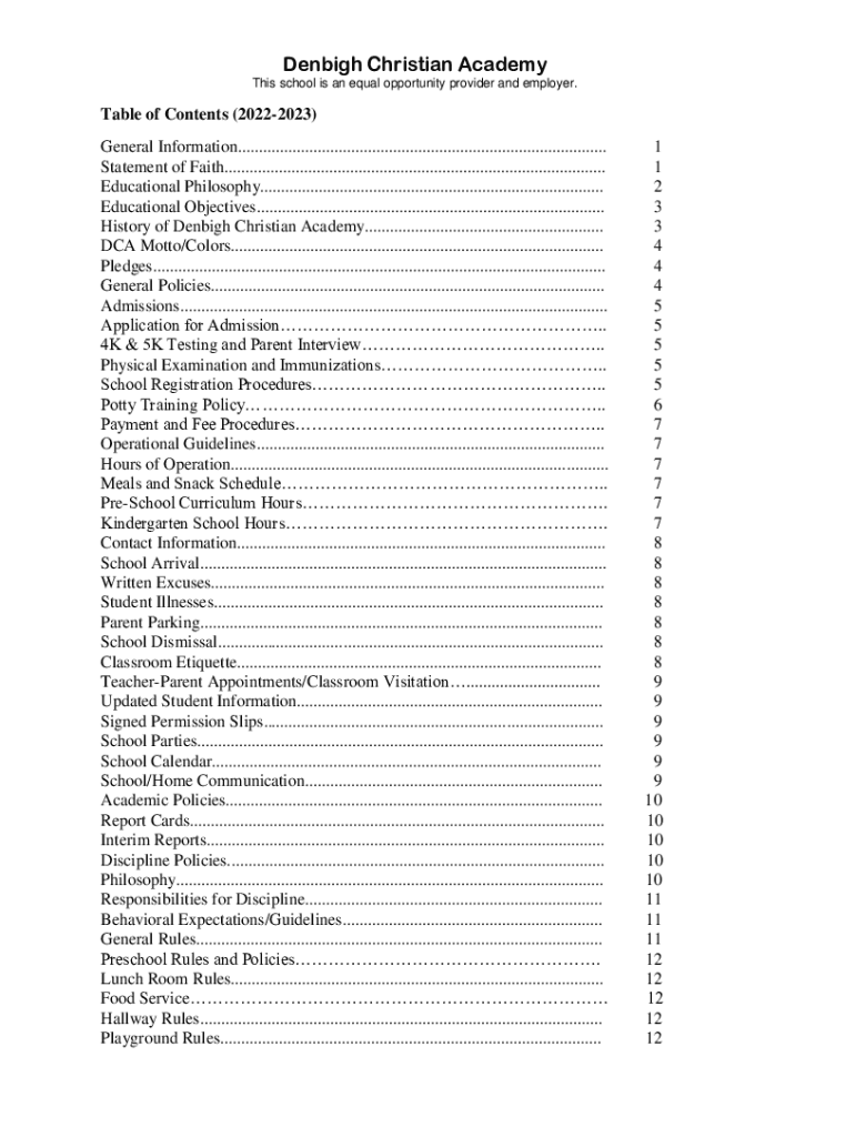 Design Christian Academy This school is an equal opportunity provider and employer. Table of Contents (20222023) General Information........................................................................................