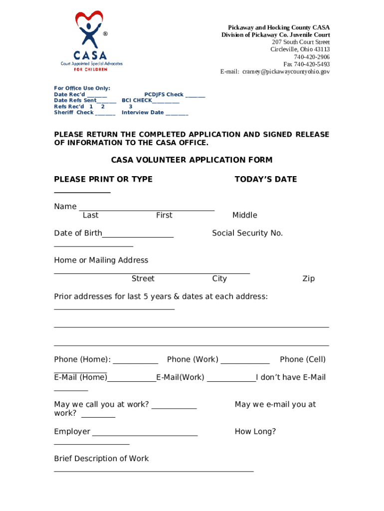 Frequently asked questions about the form CASA VOLUNTEER APLICATION