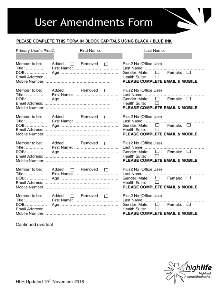 Get the free User Amendments Form - High Life Highland