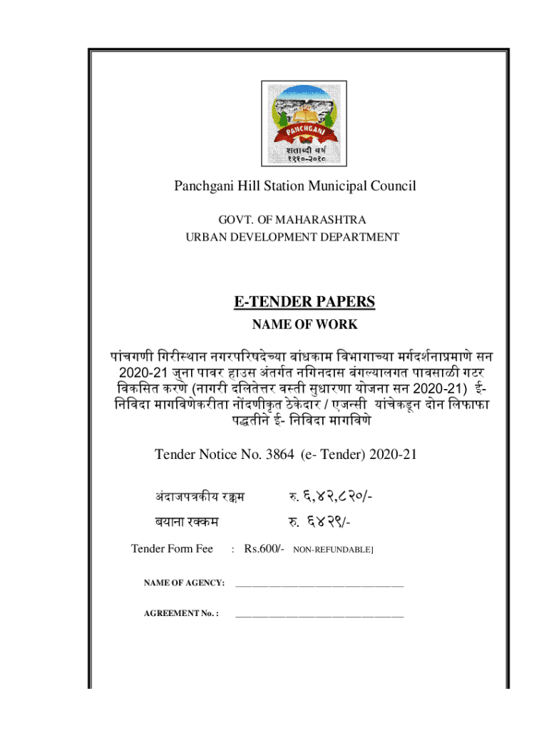 Penchant Hill Station Municipal Council GOVT. OF MAHARASHTRA URBAN DEVELOPMENT DEPARTMENTETENDER PAPERS NAME OF WORK 202021 \' (,