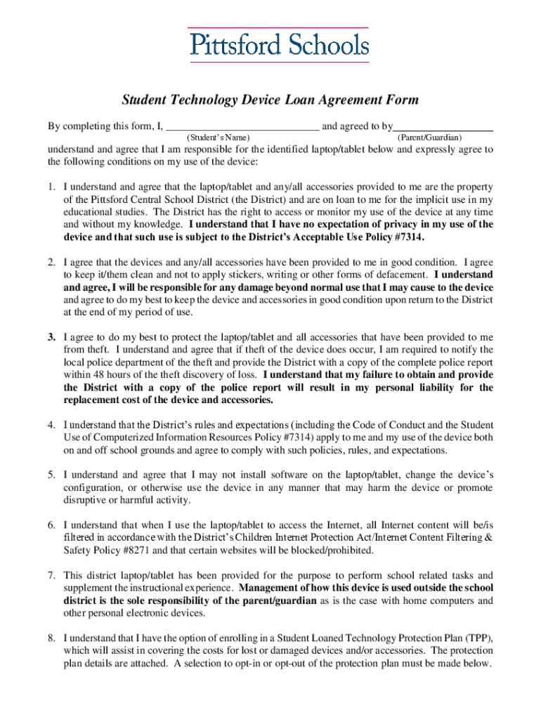How to fill out student device loan agreement