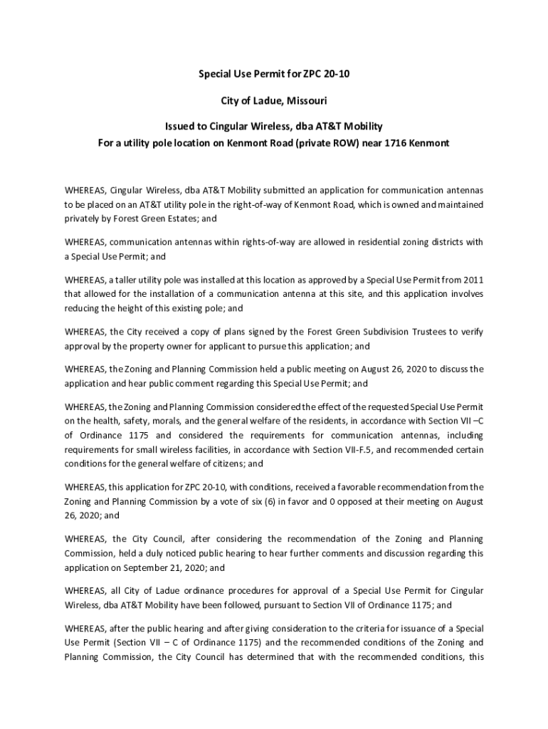 Get the free Special Use Permit for ZPC 20-10 City of Ladue, Missouri ...