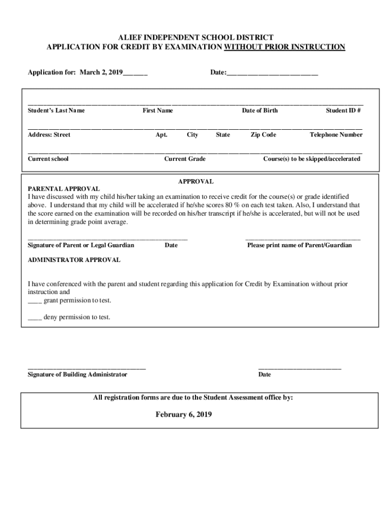 APPLICATION FOR CREDIT BY EXAMINATION WITHOUT PRIOR INSTRUCTION