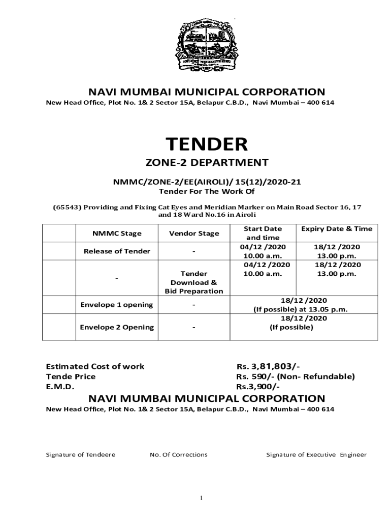 New Head Office, Plot No. 1& 2 Sectors 15A, Belarus C.B.D., Navi Mumbai 400 614TENDER