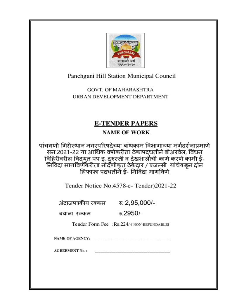 Fill out your tender form fee rs online with pdfFiller!