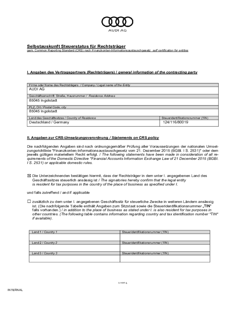 gem. Common Reporting Standard (CRS) each FinanzkontenInformationsaustauschgesetz self certification for entities. Annabel DES Vertragspartners (Rechargers)