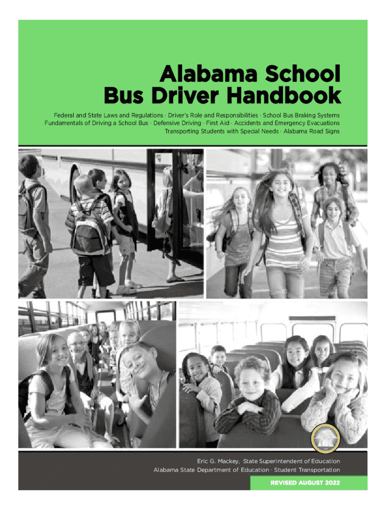 Alabama School Bus Driver Handbook Federal and State Laws and Regulations Drivers Role and Responsibilities School Bus Braking Systems Fundamentals of Driving a School Bus Defensive Driving First
