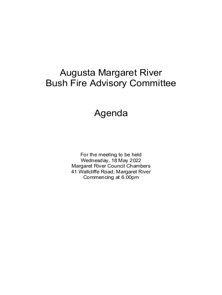 Augusta Margaret River Bush Fire Advisory Committee Agenda the meeting to be held Wednesday, 18 May 2022 Margaret River Council Chambers 41 Radcliffe Road, Margaret River Commencing at 6.00pmShire