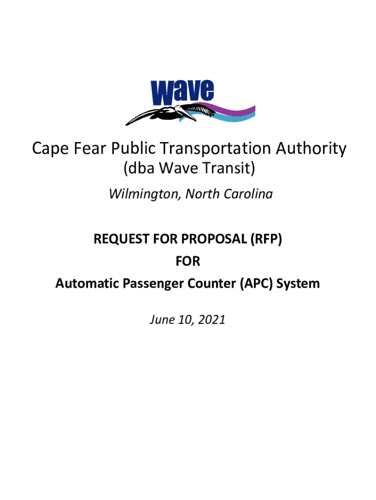 Cape Fear Public Transportation Authority (DBA Wave Transit) Wilmington, North Carolina REQUEST FOR PROPOSAL (RFP) FOR Automatic Passenger Counter (APC) System June 10, 2021Table of Contents 1.1Overview
