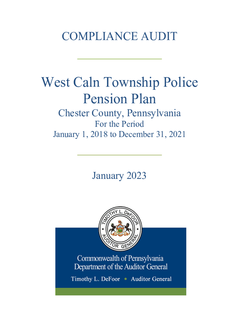 COMPLIANCE AUDIT___West Can Township Police Pension Plan Chester County, Pennsylvania the Period January 1, 2018, to December 31, 2021___ January 2023Board of Township Supervisors West Can Township