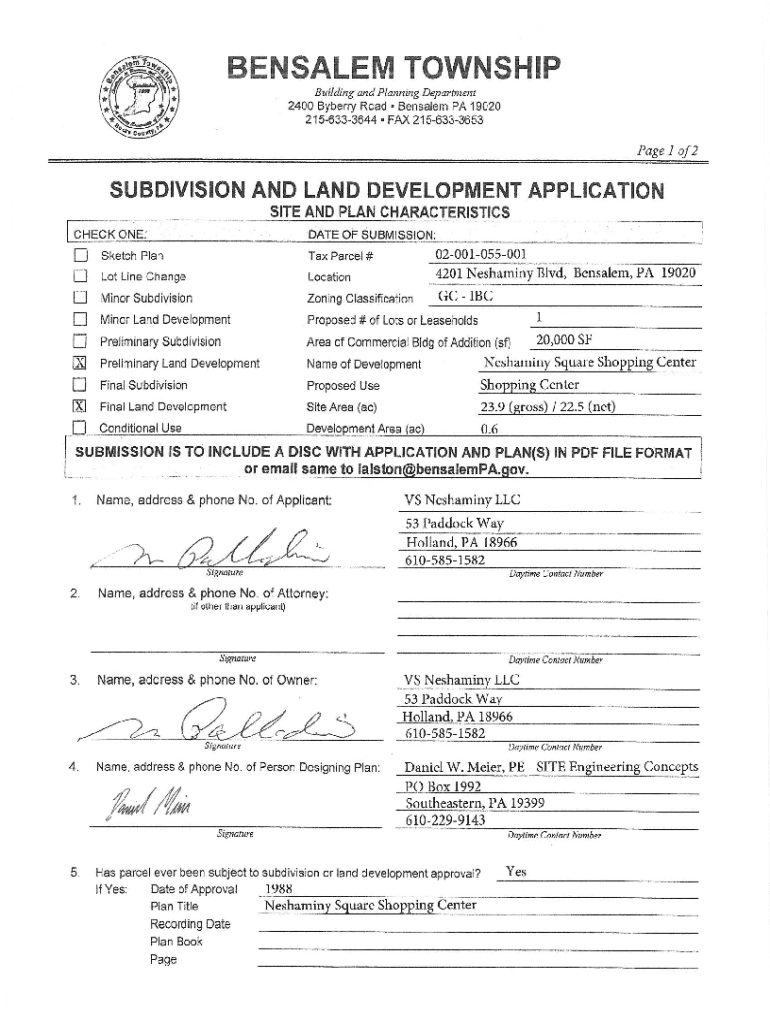 RESHAPING VS LCN PRELIMINARY/FINAL LAND DEVELOPMENT PLAN RESHAPING SQUARE SHOPPING CENTER 4201 RESHAPING BOULEVARD.TELEVISION PLAN PREPARED BY:P.O. BOX 1992 SOUTHEASTERN, PA 19399 P: 6102400450F: