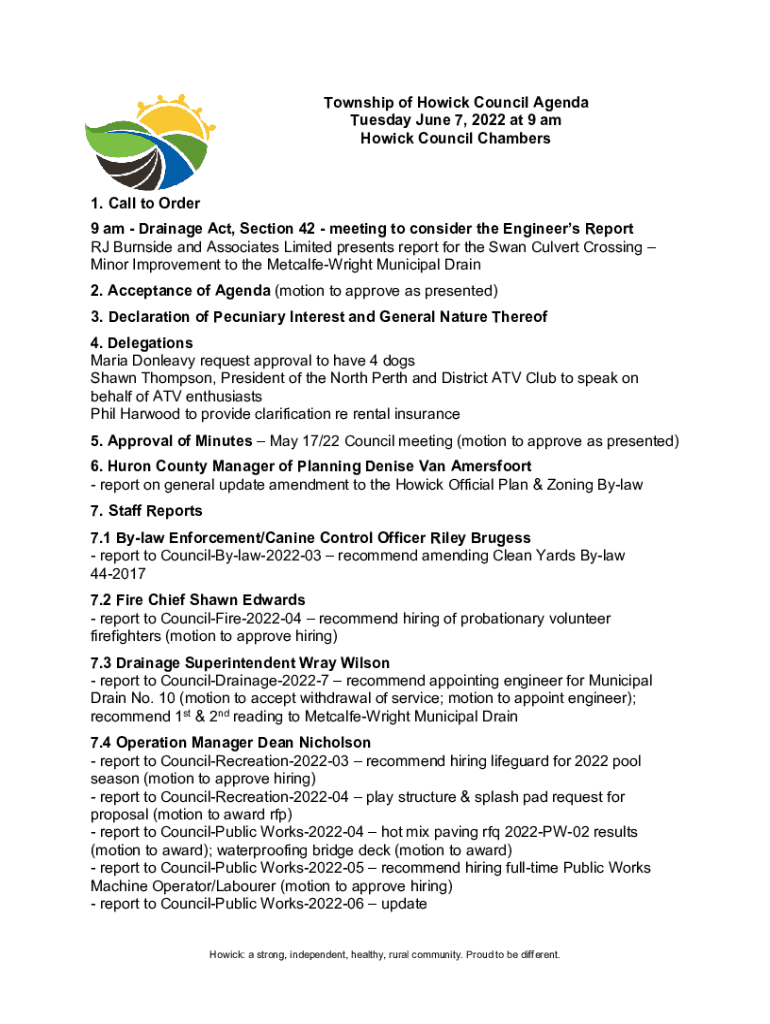 9 am Drainage Act, Section 42 meeting to consider the Engineers Report