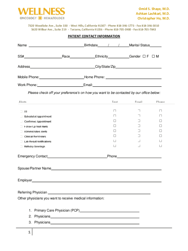 Wellness Oncology Ampamp Hematology is not the form you're looking for?Search for another form here.