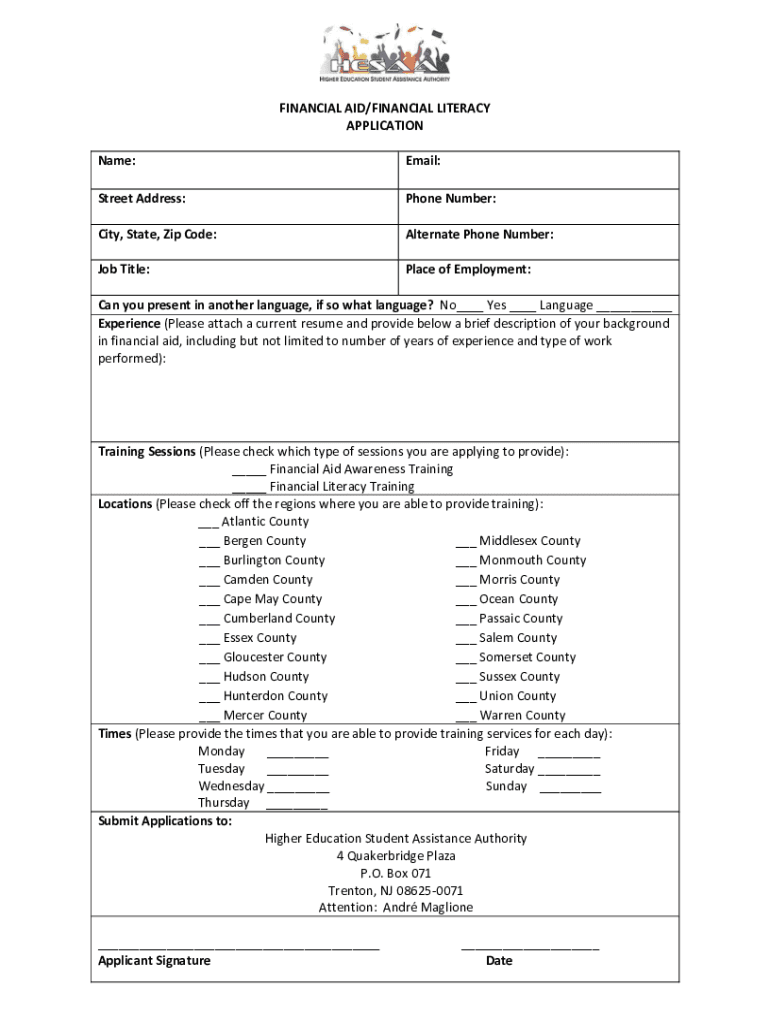 Get the free FINANCIAL AID/FINANCIAL LITERACY APPLICATION Name ...