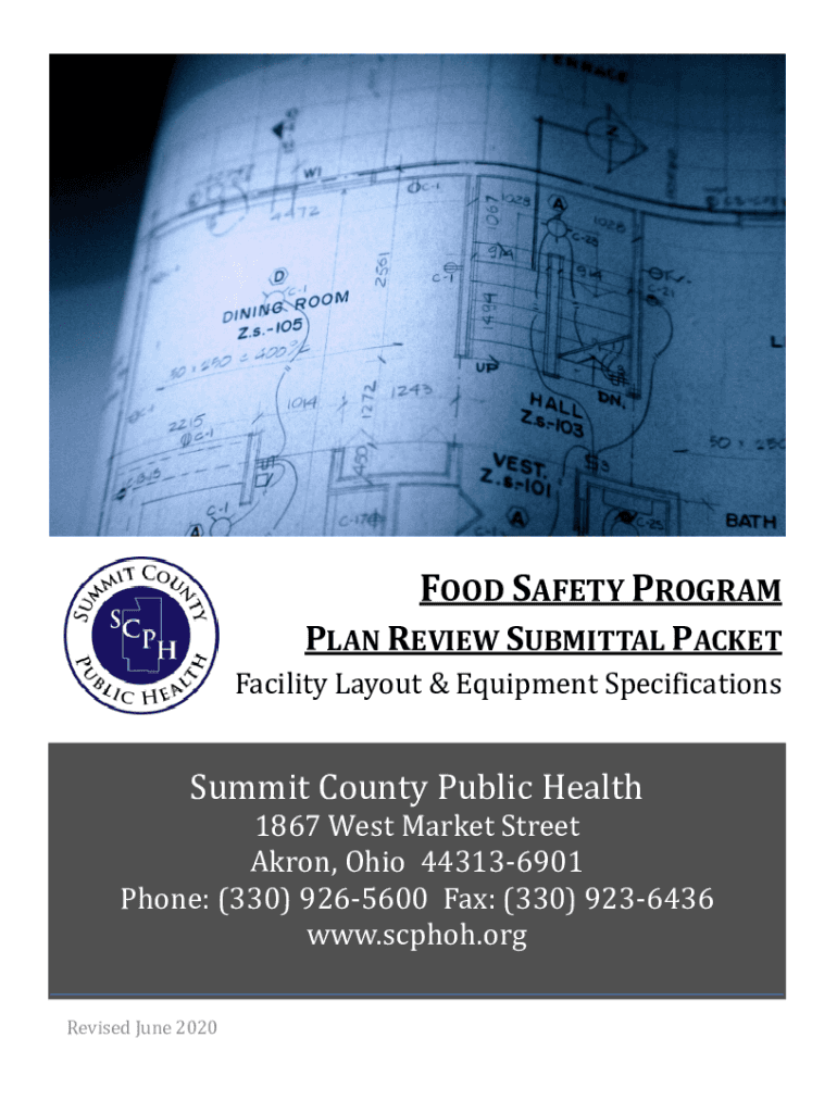FOOD SAFETY PROGRAM PLAN REVIEW SUBMITTAL PACKET Facility Layout & Equipment SpecificationsSummit County Public Health1867 West Market Street Akron, Ohio 443136901 Phone: (330) 9265600 Fax: (330)