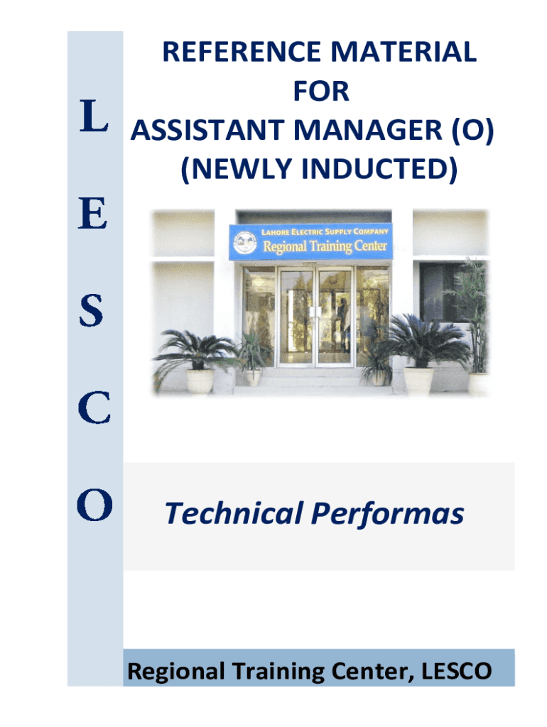 REFERENCE MATERIAL FOR ASSISTANT MANAGER (O) (NEWLY INDUCTED)Technical PerformasRegional Training Center, LESCOASSISTANT MANAGER (O) (NEWLY INDUCTED) SAMPLE PERFORMS LIST OF SAMPLE PERFORMS 1.2.3.