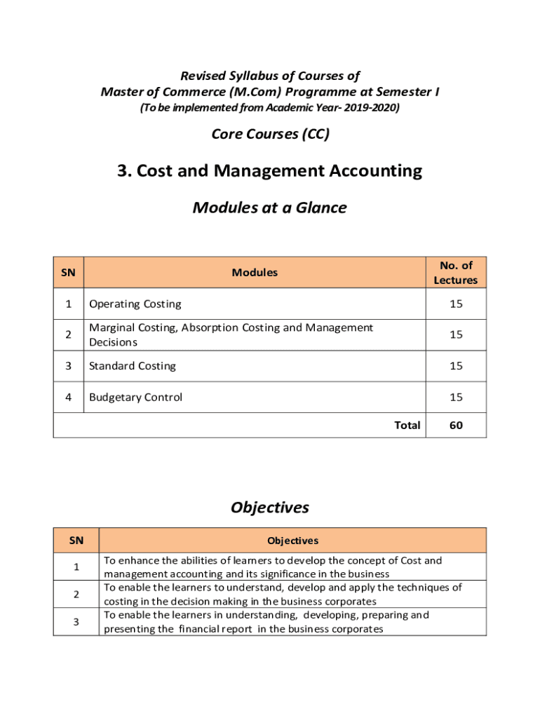 Revised Syllabus of Courses of Master of Commerce (M.Com) Program at Semester I (To be implemented from Academic Year 20192020)Core Courses (CC)3. Cost and Management Accounting Modules at a glance.
