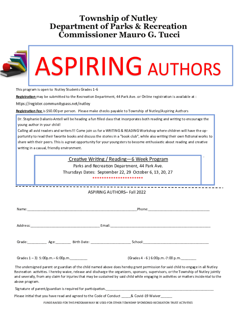 Township of Outlet Department of Parks & Recreation Commissioner Mauro G. TucciASPIRING AUTHORS This program is open to Outlet Students Grades 16Registration may be submitted to the Recreation Department,