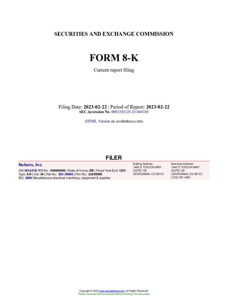 Get the free Nuburu, Inc. General Corporate Statement (Form8) - Benzinga