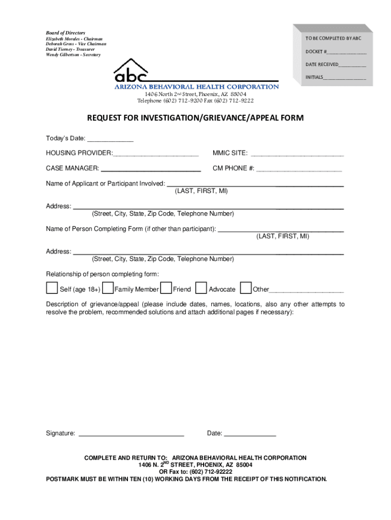 Request For Investigationgrievanceappeal Form is not the form you're looking for?Search for another form here.