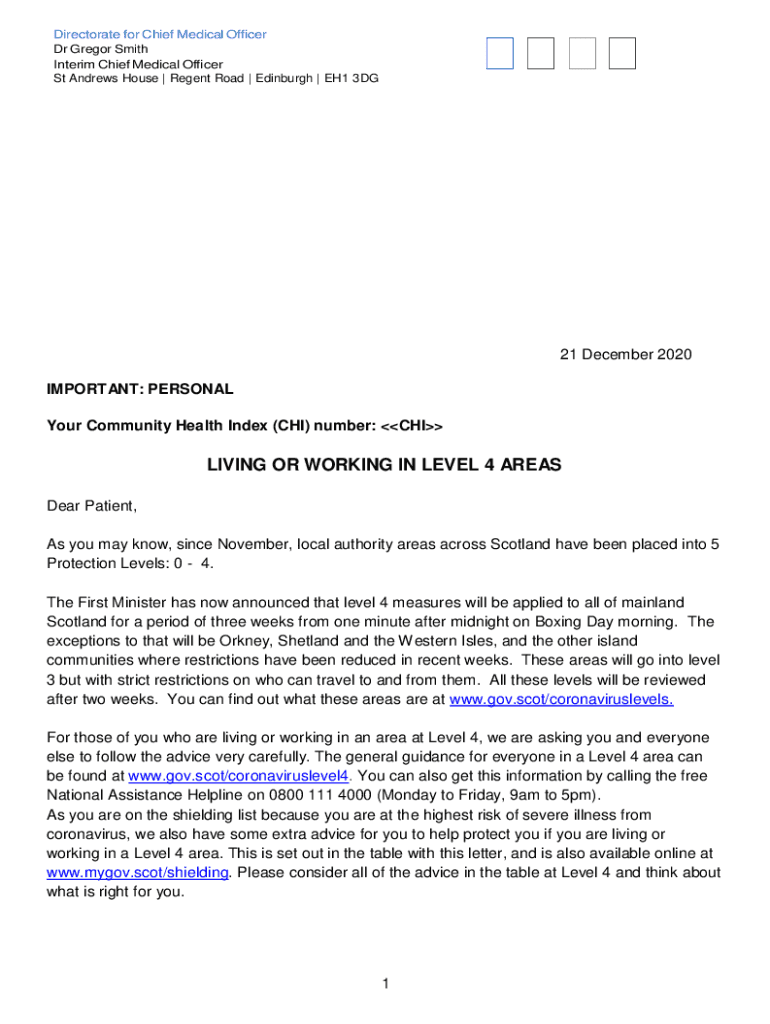 Directorate for Chief Medical Officer Dr Gregor Smith Interim Chief Medical Officer St Andrews House | Regent Road | Edinburgh | EH1 3DG21 December 2020 IMPORTANT: PERSONAL Your Community Health Index
