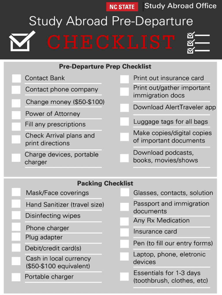 Get the free Pre-Departure Checklist - Study Abroad - studyabroad ncsu