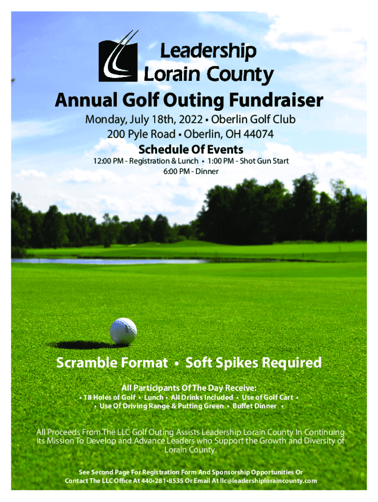 Annual Golf Outing Fundraiser Monday, July 18th, 2022 Oberlin Golf Club 200 Pyle Road Oberlin, OH 44074Schedule Of Events12:00 PM Registration & Lunch 1:00 PM Shot Gun Start 6:00 PM DinnerScramble