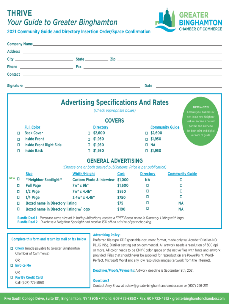 2021 Community Guide and Directory Insertion Order/Space Confirmation
