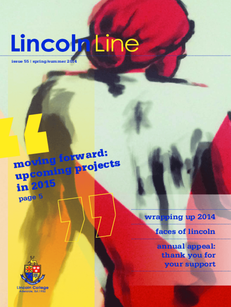Lincoln Line issue 55 | spring/summer 2014th : a w r o f moving EC t s j o r p g n upcoming in 2015 page 5wrapping up 2014 faces of Lincoln annual appeal: thank you for your support contents from