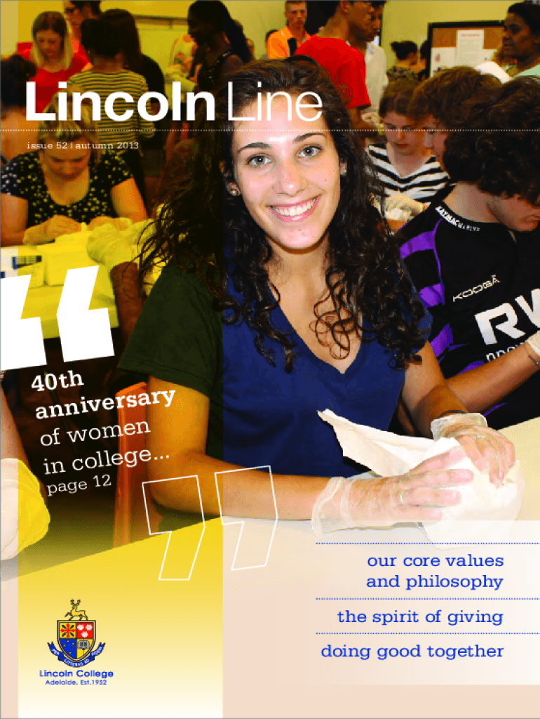 Lincoln Line issue 52 | autumn 20134 0th ARY panniers n of some. e. In col2leg page 1our core values and philosophy the spirit of giving doing good together contents from the principal ..............................................