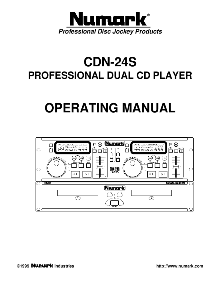 Professional Disc Jockey ProductsCDN24S PROFESSIONAL DUAL CD PLAYEROPERATING MANUAL1999Industrieshttp://www.numark.comCDN24SSafety Information and Product Registration CAUTION7. Ventilation The appliance