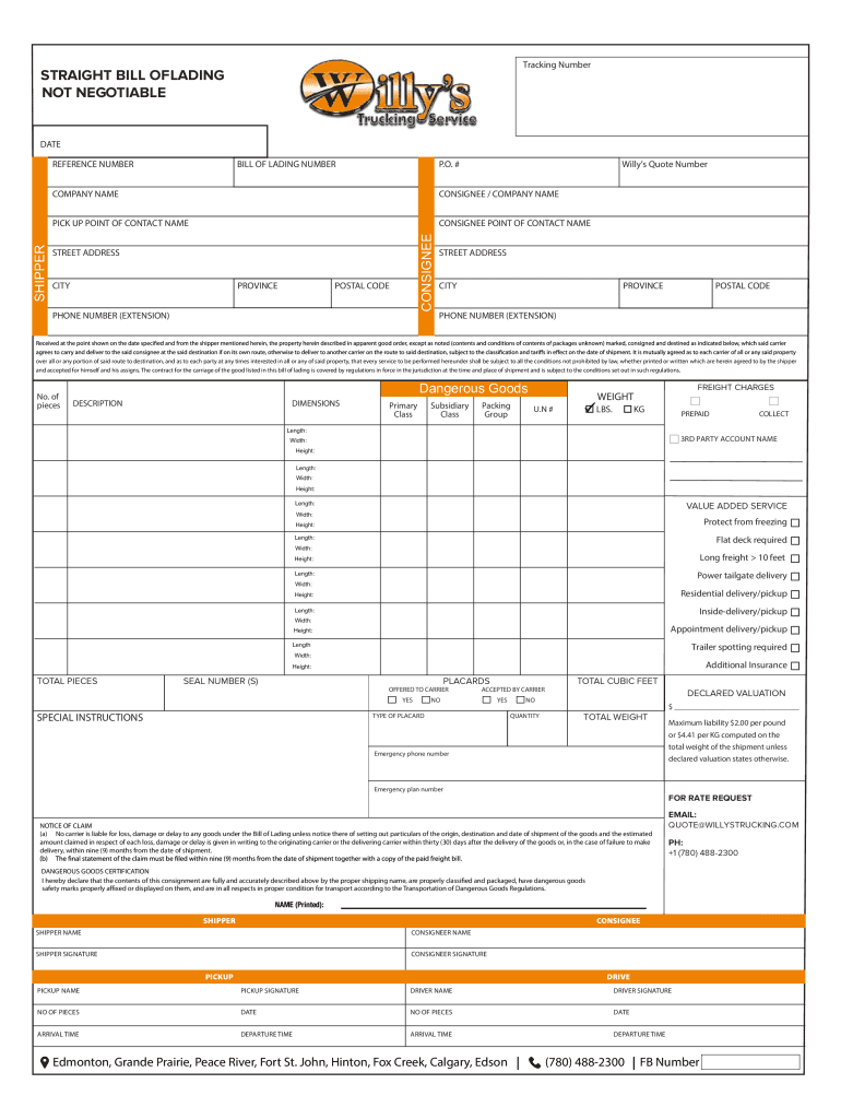 Tracking NumberSTRAIGHT BILL OF LADING