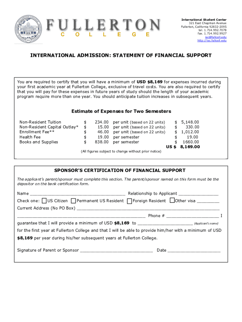 International Student Center 321 East Chapman Avenue Fullerton, California 928322095 tel. 1.714.992.7078 fax. 1.714.992.9927 isc@fullcoll.edu http://isc.fullcoll.eduINTERNATIONAL ADMISSION: STATEMENT