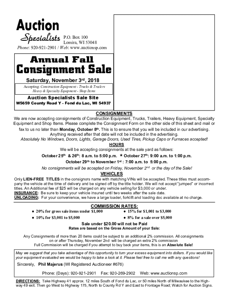 Fill out your auction specialists upcoming auctions online with pdfFiller!