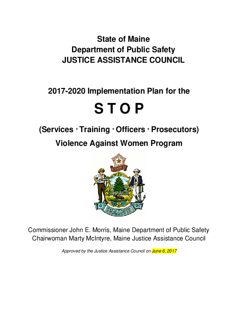 State of Maine Department of Public Safety JUSTICE ASSISTANCE COUNCIL20172020 Implementation Plan for Heston (Services * Training * Officers * Prosecutors) Violence Against Women ProgramCommissioner