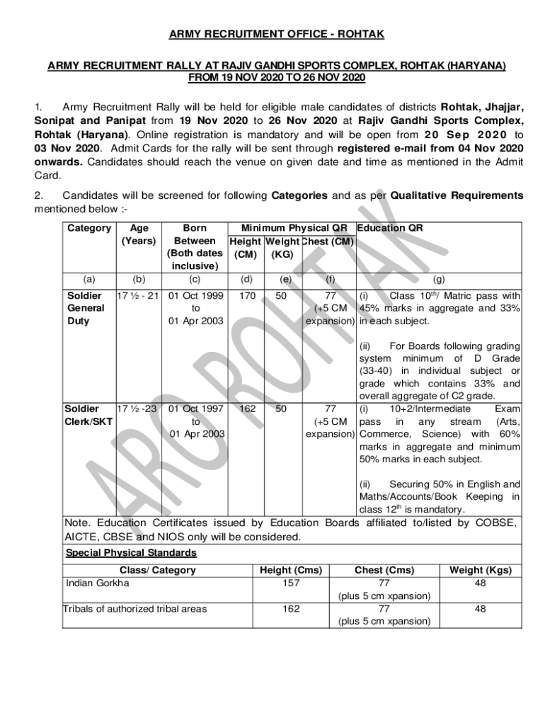 ARMY RECRUITMENT RALLY AT RAJIV GANDHI SPORTS COMPLEX, ROTA (HARYANA)