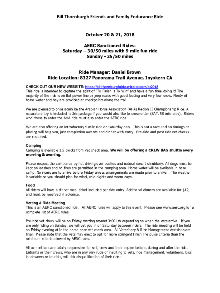 Get the free The Bill Thornburgh Friends and Family 50 mile Endurance Ride