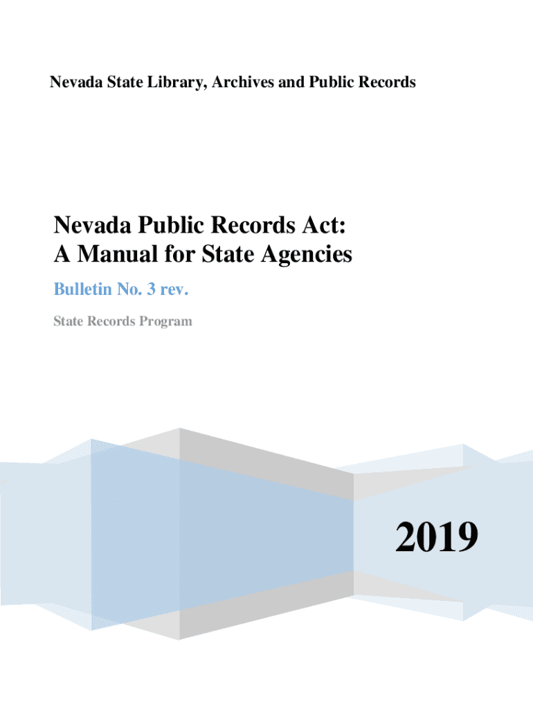 Nevada State Library, Archives and Public Records Nevada Public Records Act: A Manual for State Agencies Bulletin No. 3 rev. State Records Program2019Tod Cole grove, Administrator Adopted by Reference,