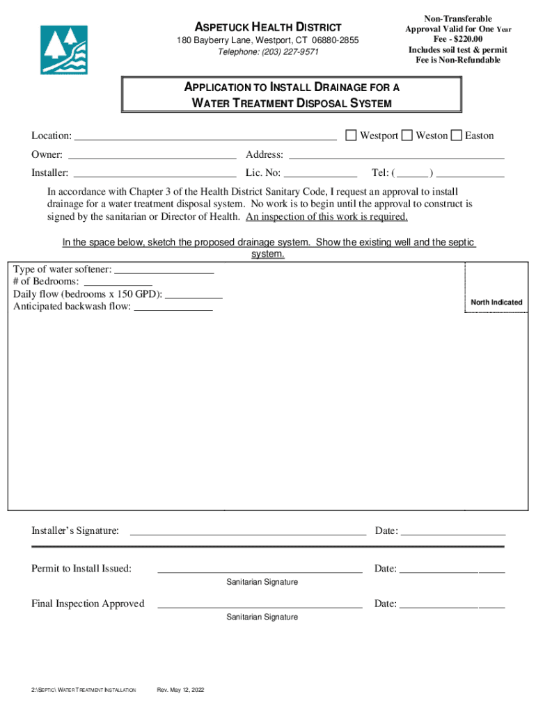 Fee is NonRefundableASPETUCK HEALTH DISTRICT