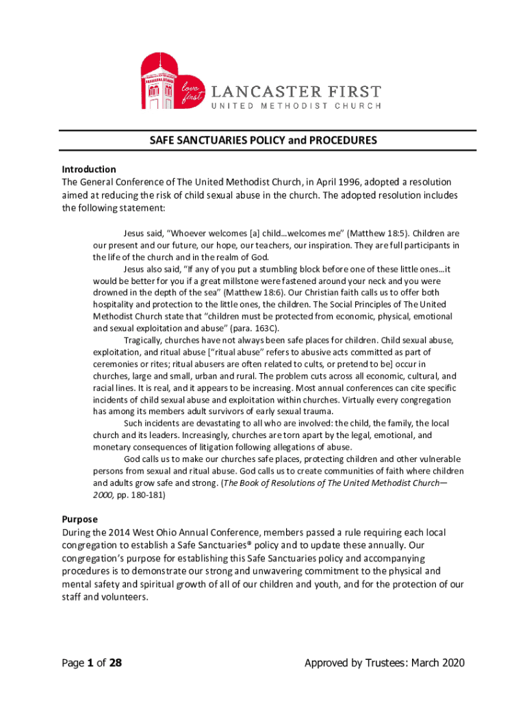 Get the free SAFE SANCTUARIES POLICY OF FIRST UNITED METHODIST CHURCH