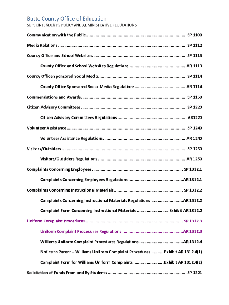 Butte County Office of EducationSUPERINTENDENTS POLICY AND ADMINISTRATIVE REGULATIONSCommunication with the Public ...................................................................................