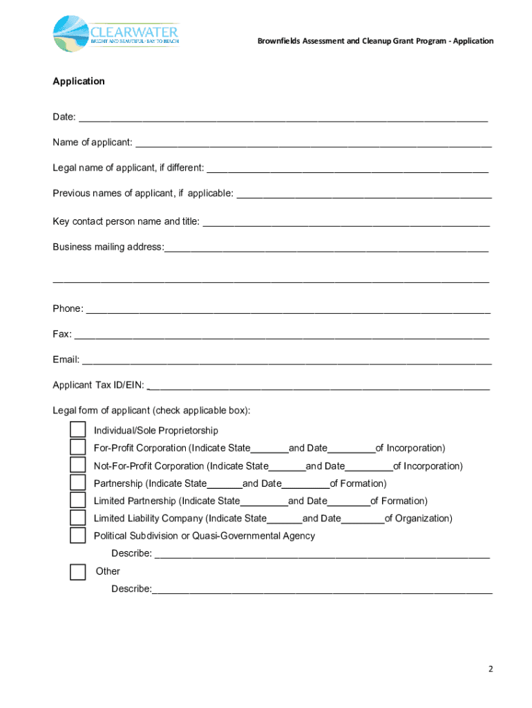 Brownfield Assessment and Cleanup Grant Program ApplicationCity of Clearwater Brownfield Assessment and Cleanup Grant Program