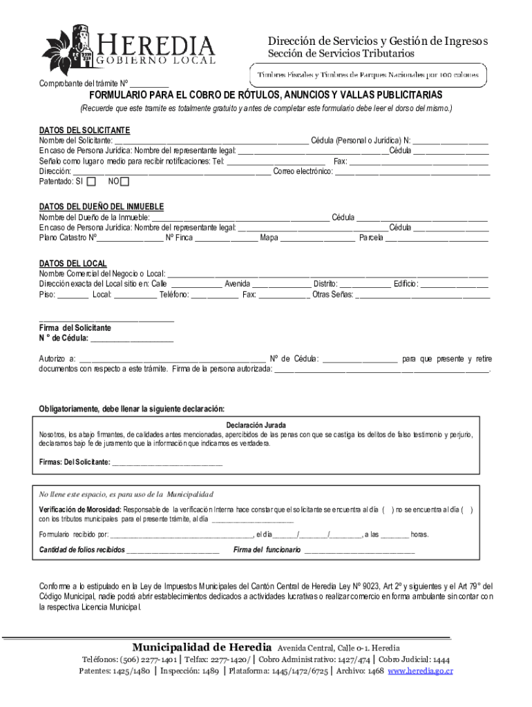 Obtener el gratis Formulario Para el Cobro de Rtulos, Anuncios y Vallas ...