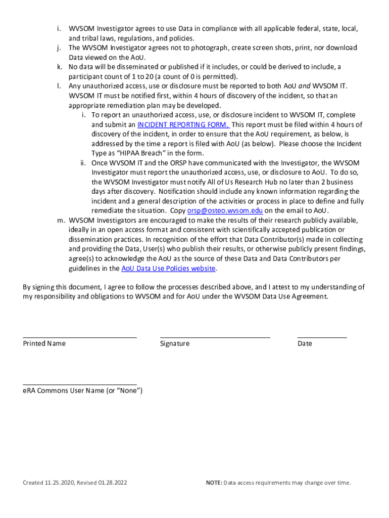 All of Us Research Hub & Data Access Requirements To complete a Data Use Request (DUE), you must first sign and return this certification to the ORP (orsp@osteo.wvsom.edu). Additionally, provide the